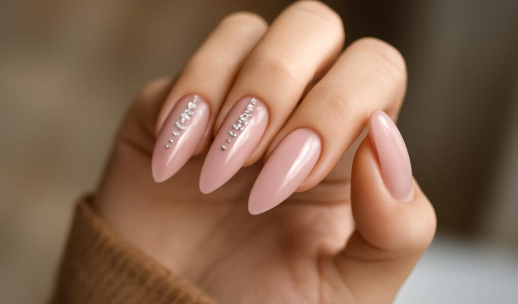 Minimalistyczny manicure z cyrkoniami w stylu Clean Girl