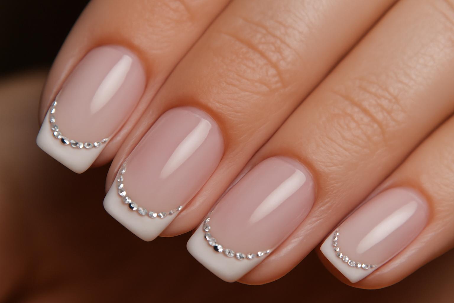 | French z cyrkoniami | Średni, elegancki | Spotkania, śluby, office | Średni | Przezroczysty róż, naturalny beż |