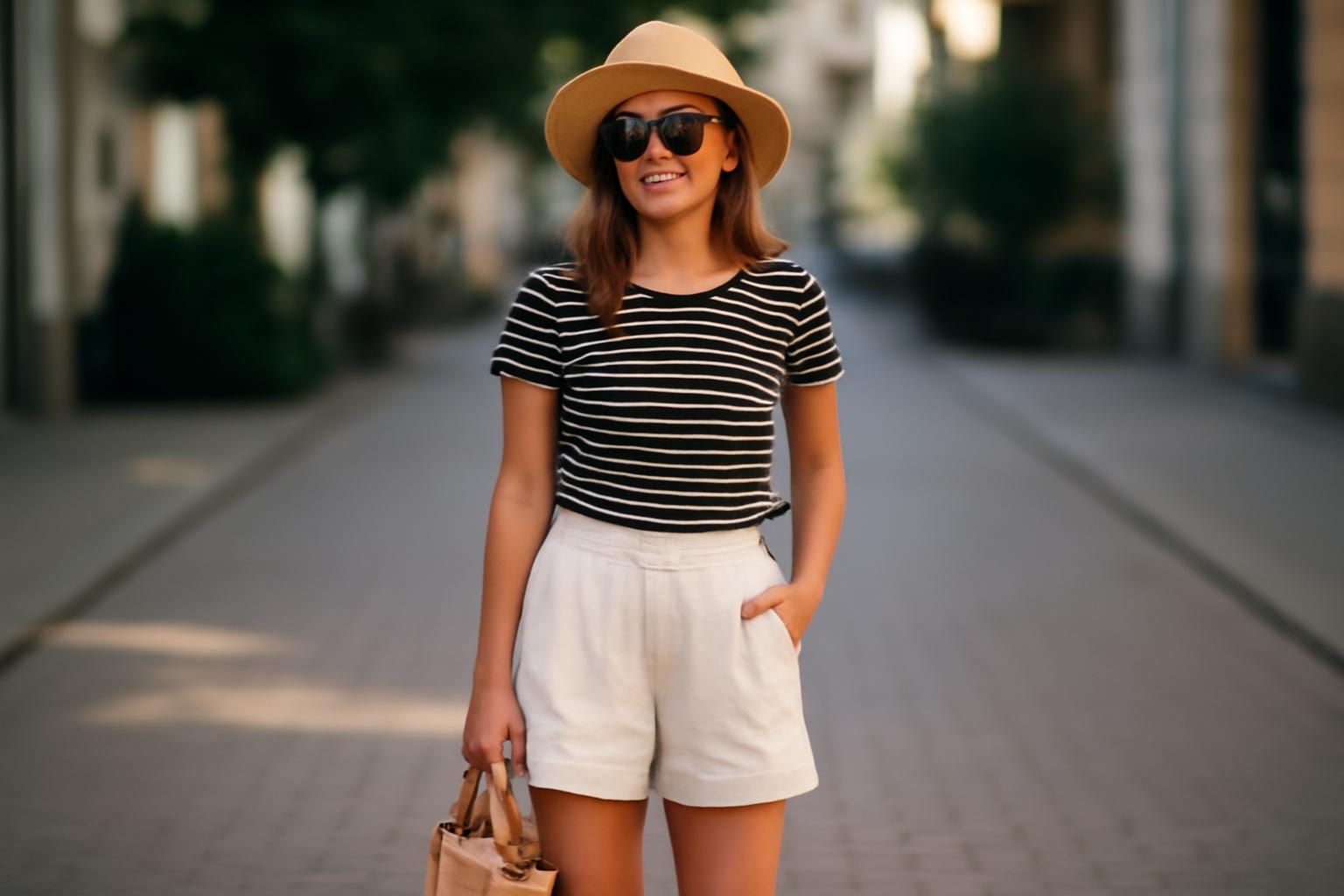 Jeans nigdy nie wychodzi z mody, a w formie skortów jest hitem sezonu. Jeansowe spódnico-spodenki z wysokim stanem doskonale podkreślają talię i wydłużają nogi. Na wakacyjny luz załóż do nich crop top w jasnym kolorze lub dopasowany top na cienkich ramiączkach. Obowiązkowym uzupełnieniem są wygodne sandały rzymianki lub klapki. Całość możesz dopełnić słomkowym kapeluszem typu bucket hat i dużą, plecioną torbą. To casualowy look idealny na letnie popołudnia.